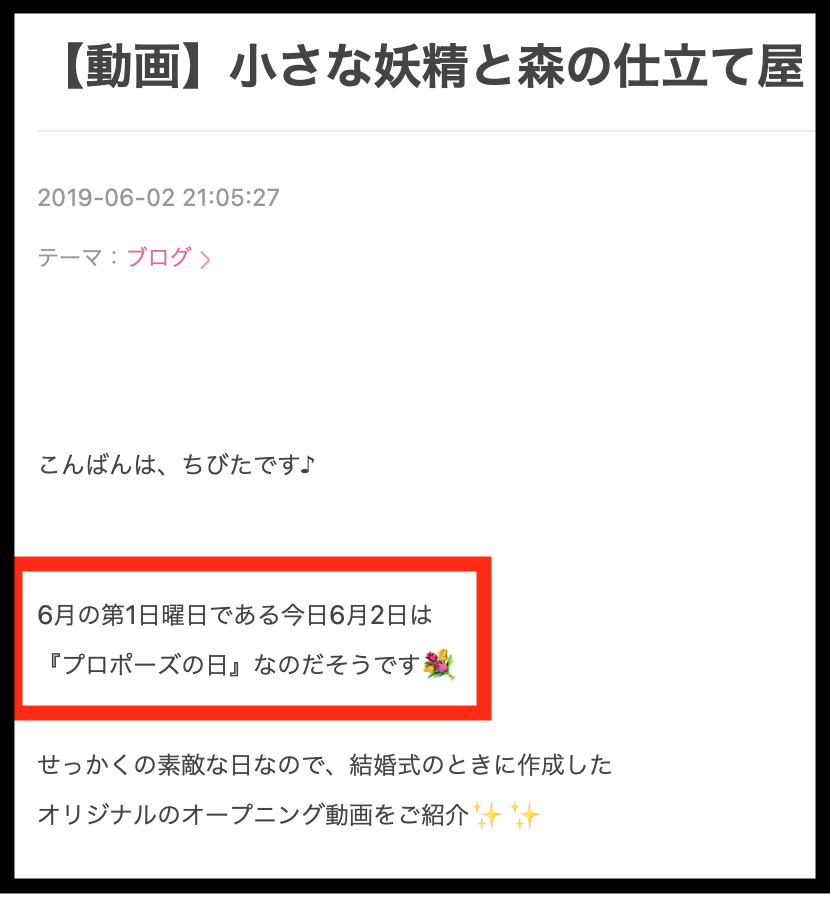 プロポーズをした日は6月2日とブログに書かれていました!