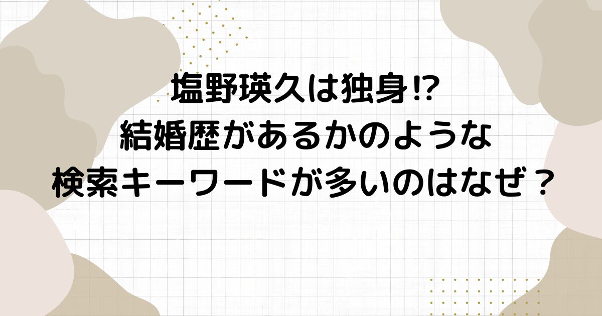 塩野瑛久は独身⁉︎結婚歴があるかのような検索キーワードが多いのはなぜ?